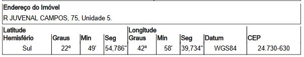 Localização: Casa em Endereço: RUA JUVENAL CAMPOS | Bairro: AMENDOEIRA | Número: N. 75 CS 05 SAO GONCALO - RJ