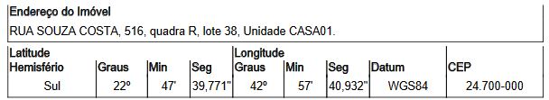 Localização: Casa em Endereço: RUA SOUZA COSTA | Bairro: BOM RETIRO | Número: N. 516 CASA01 SAO GONCALO - RJ