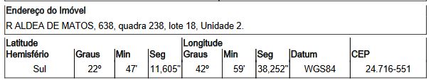 Localização: Casa em Endereço: RUA ALDEA DE MATOS | Bairro: JARDIM CATARINA | Número: N. 638 QUADRA 238 LOTE 18 CASA 02 SAO GONCALO - RJ