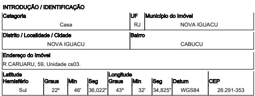 Localização: Casa em Endereço: RUA CARUARU | Bairro: CABUCU | Número: N. 59 CS 03 LT 03 QD 40 NOVA IGUACU - RJ