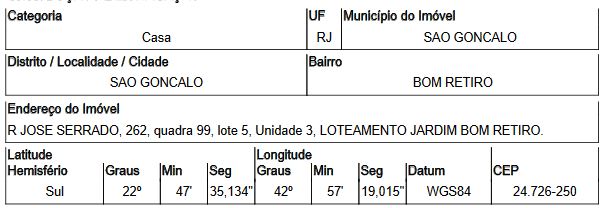 Localização: Casa em Endereço: RUA JOSE SERRADO | Bairro: BOM RETIRO | Número: N. 262 CS 03 LT 05 QD 99 SAO GONCALO - RJ
