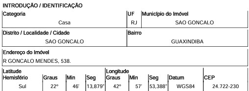 Localização: Casa em Endereço: RUA GONCALO MENDES | Bairro: GUAXINDIBA | Número: N. 538 LT 20 QD 296 SAO GONCALO - RJ